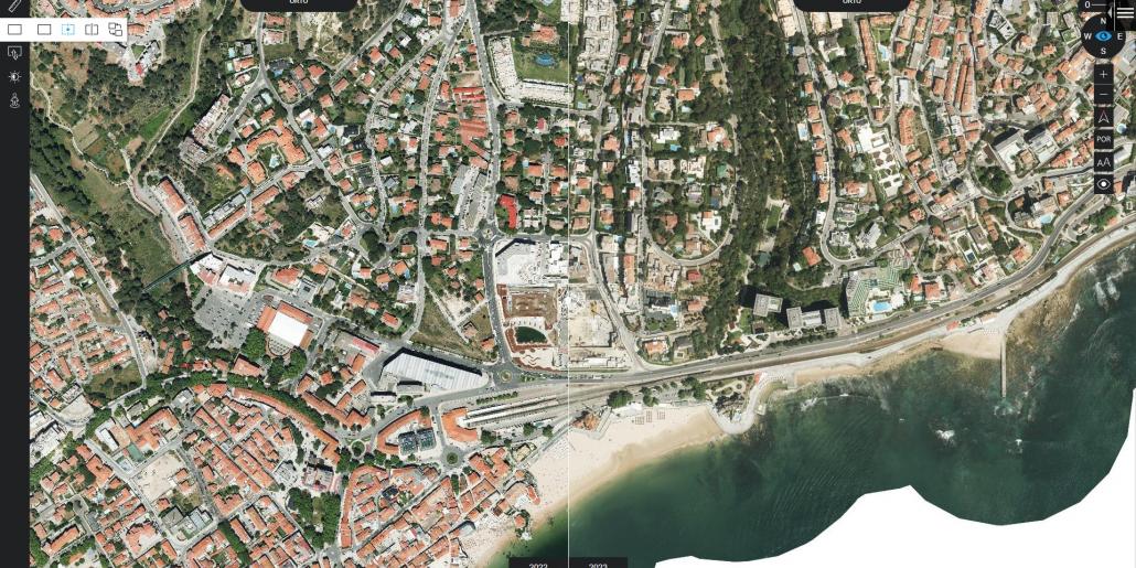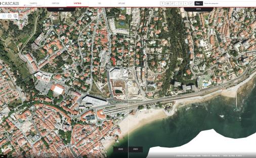Integração de vistas de rua e oblíquas cuja propriedade integral passou a ser da Câmara Municipal de Cascais: este novo separador possibilita visualizar e comparar a mesma área em espaços temporais diferentes.